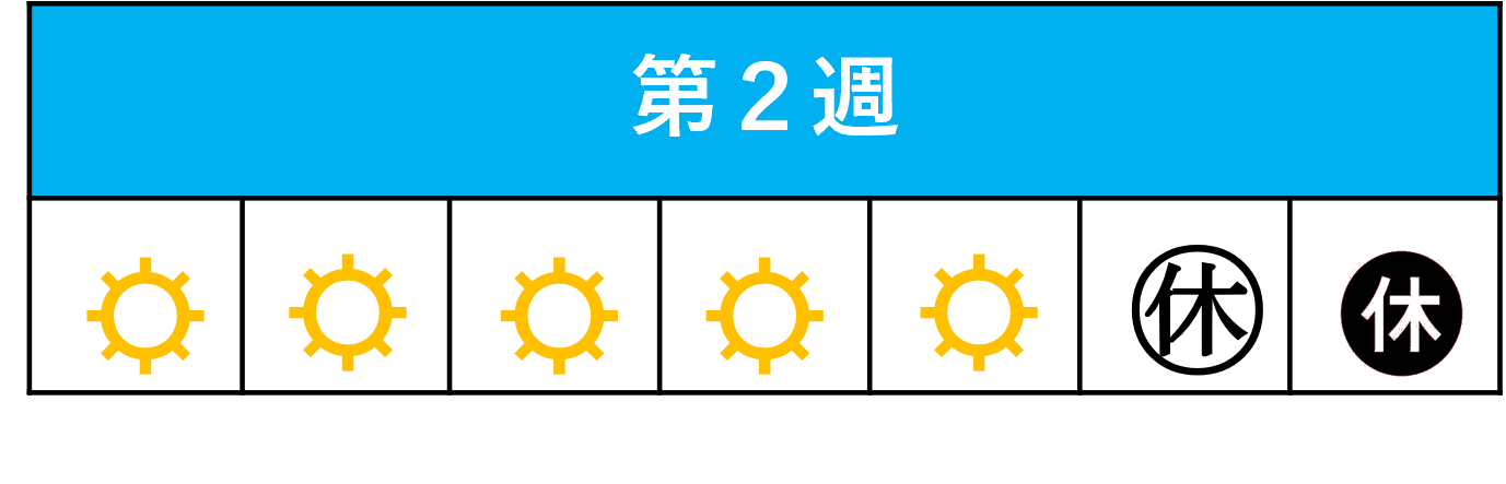 | 勤務時間 | 交替制(例) 1. 09:00~18:00 2. 18:00~翌09:00 3. 09:00~翌09:00 4. その他勤務場所により異なる |